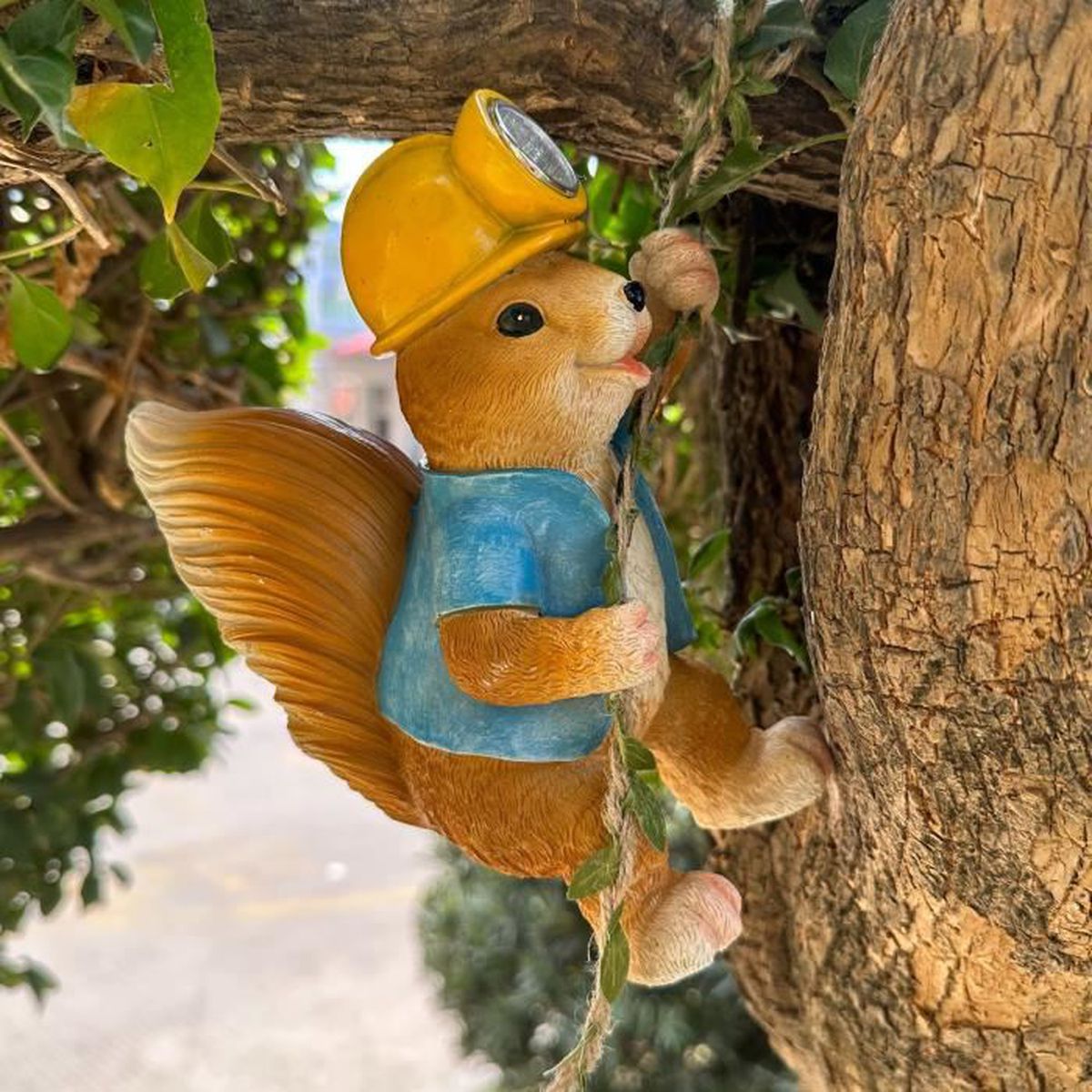Figurina di scoiattolo rampicante illuminata a energia solare per la decorazione del giardino esterno