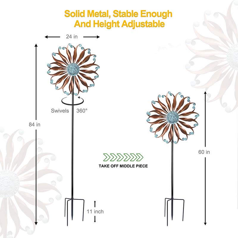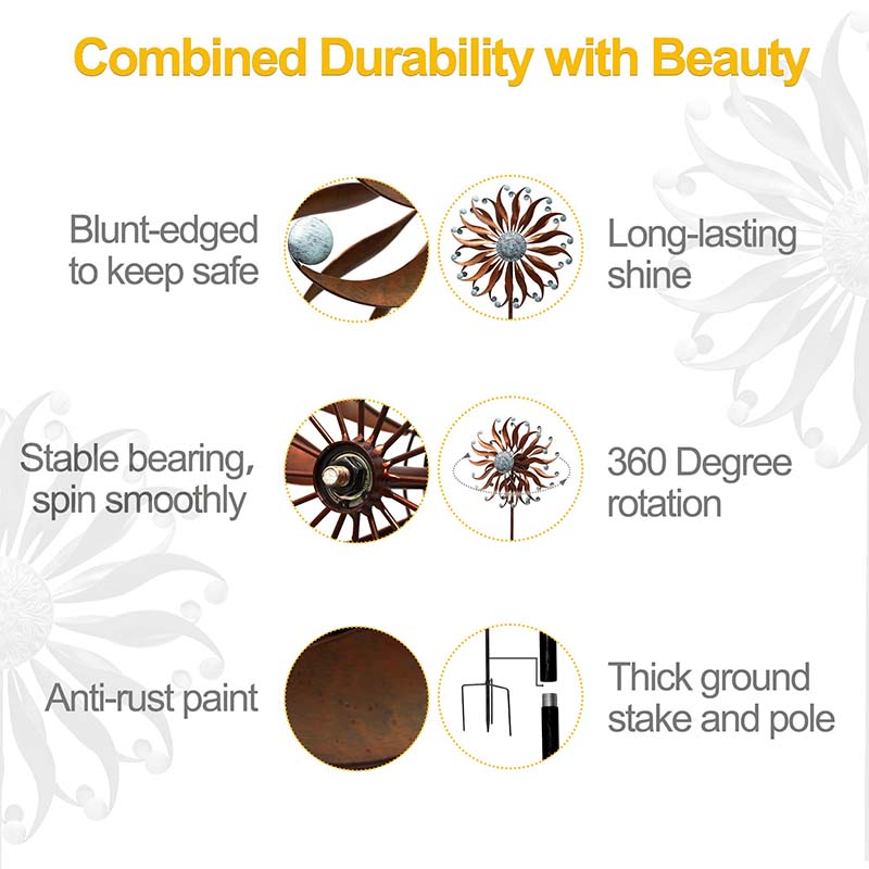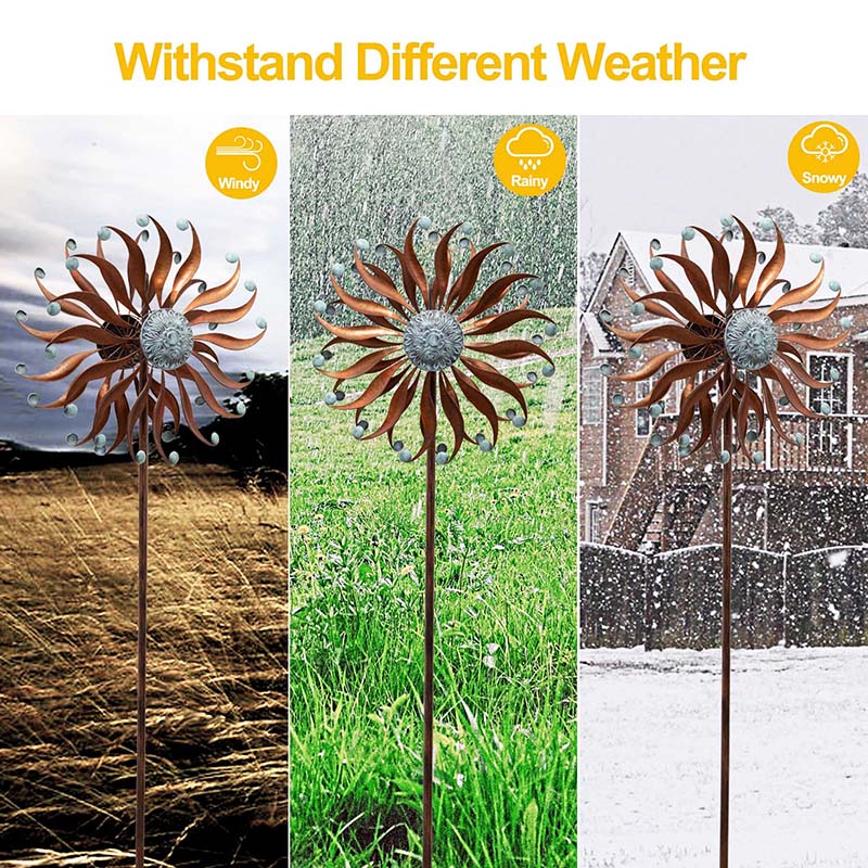 Built from weatherproof copper metal alloy with durable frosted antique finishing, this wind spinners withstands sun, snow and rain.