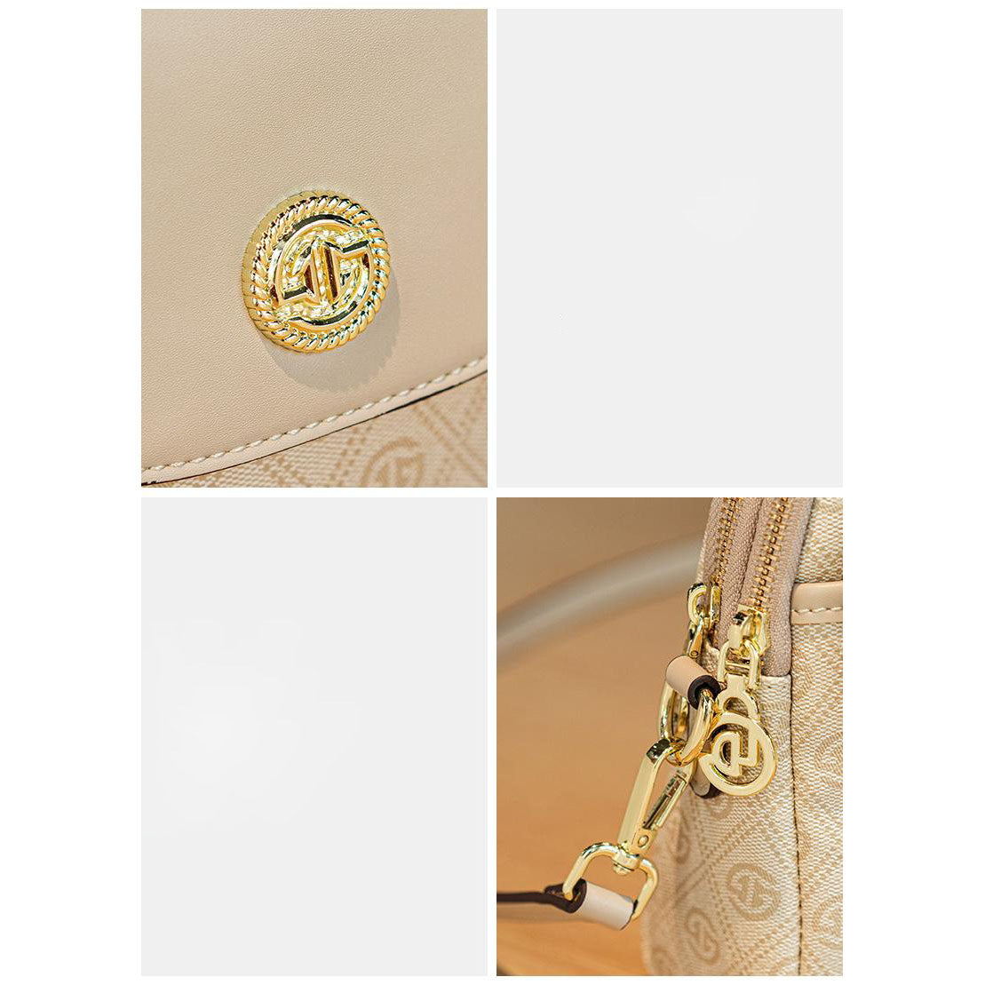 Dual Shoulder Straps: Comes with a wide fabric strap and a matching leather strap, both detachable and adjustable for shoulder or crossbody wear.