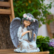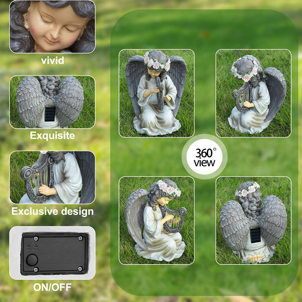 Solar Angel Garden Statue with Light Harp Playing Angel Figurine